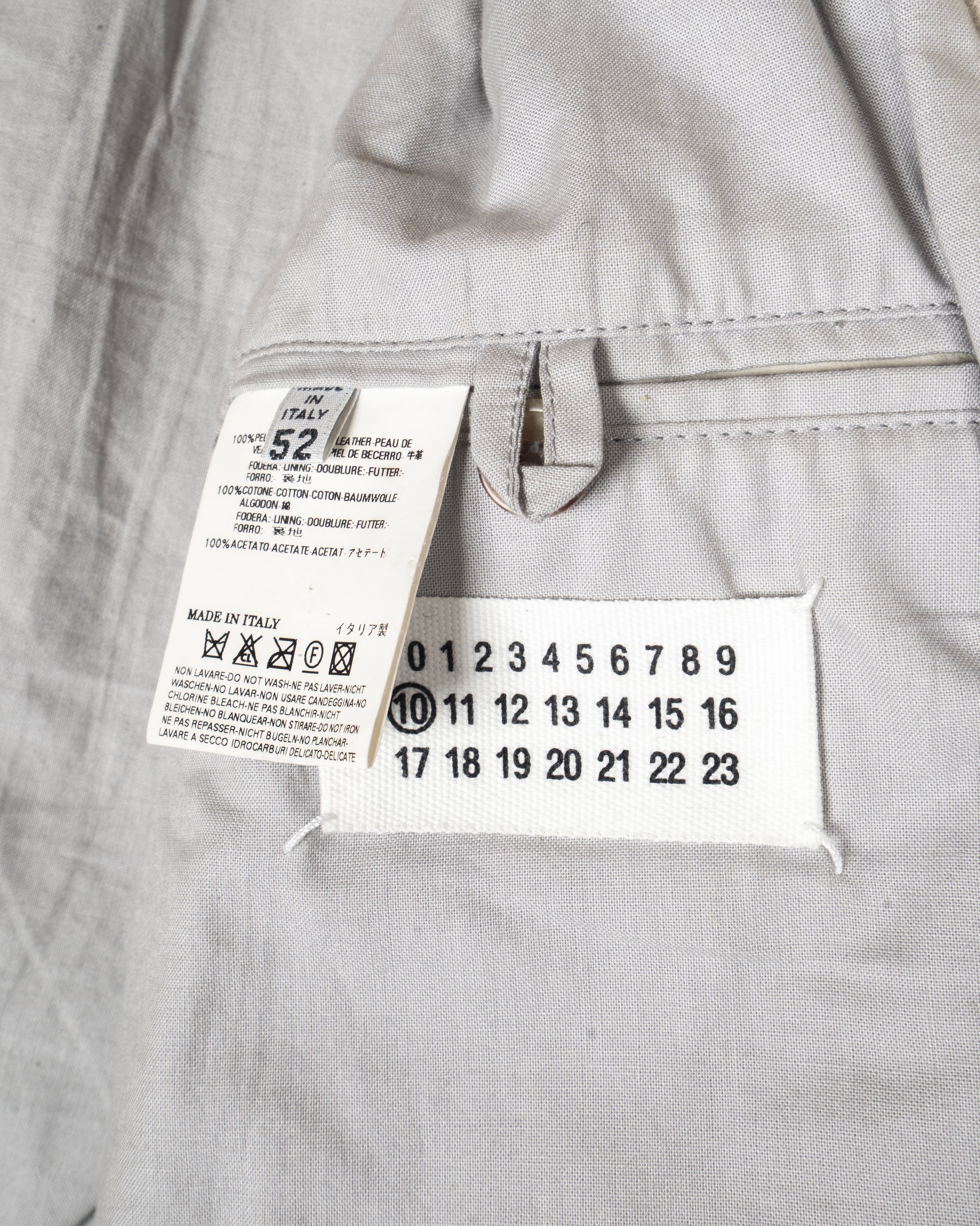 Label size 52. Classic Margiela Line 10 proportions with slightly dropped shoulders and a relaxed, boxy body while maintaining a sharp front structure.