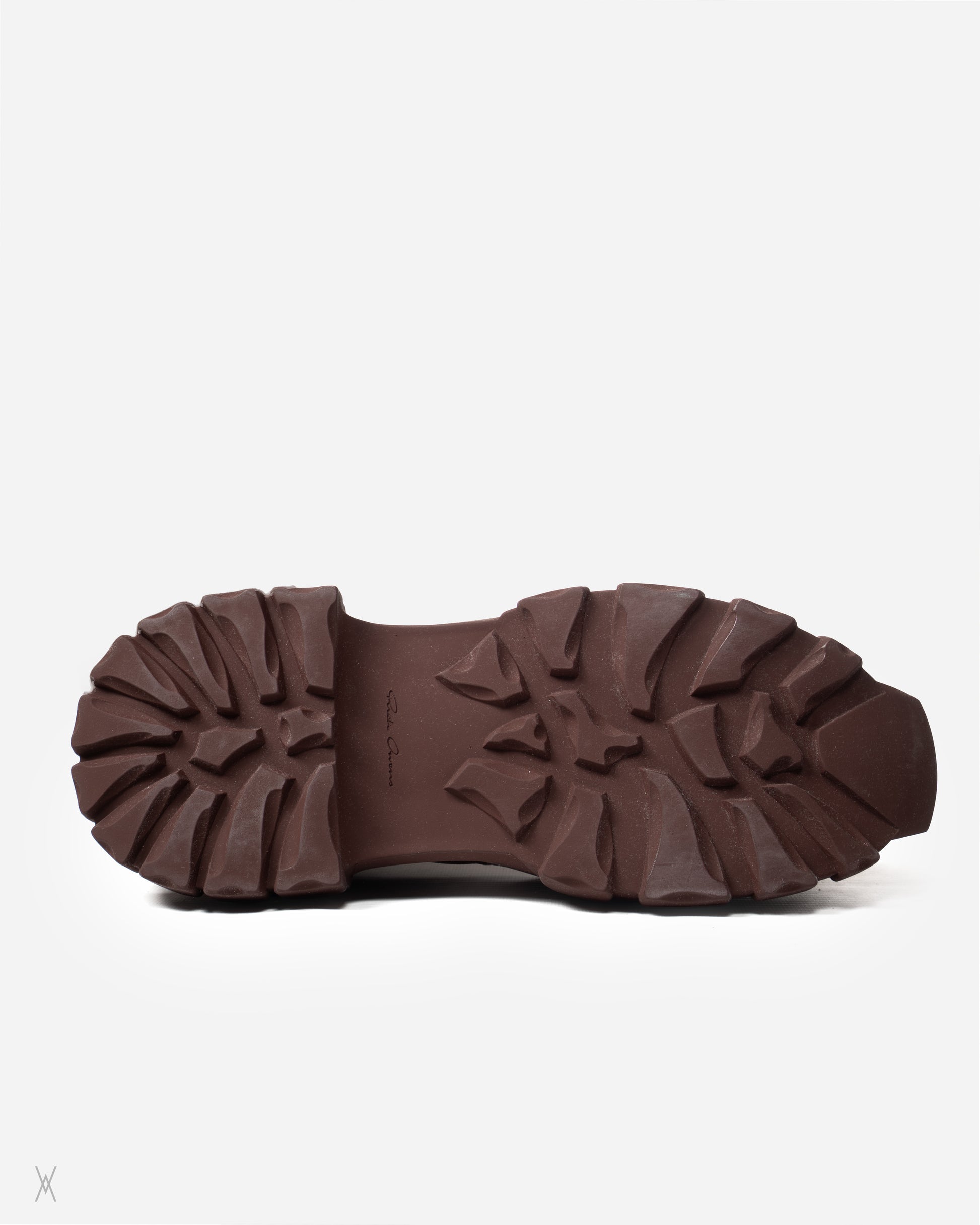 The design combines a rounded Bozo toe with Rick Owens’ signature oversized sole unit. Finished with tonal stitching and a pull-on construction without hardware or closures.