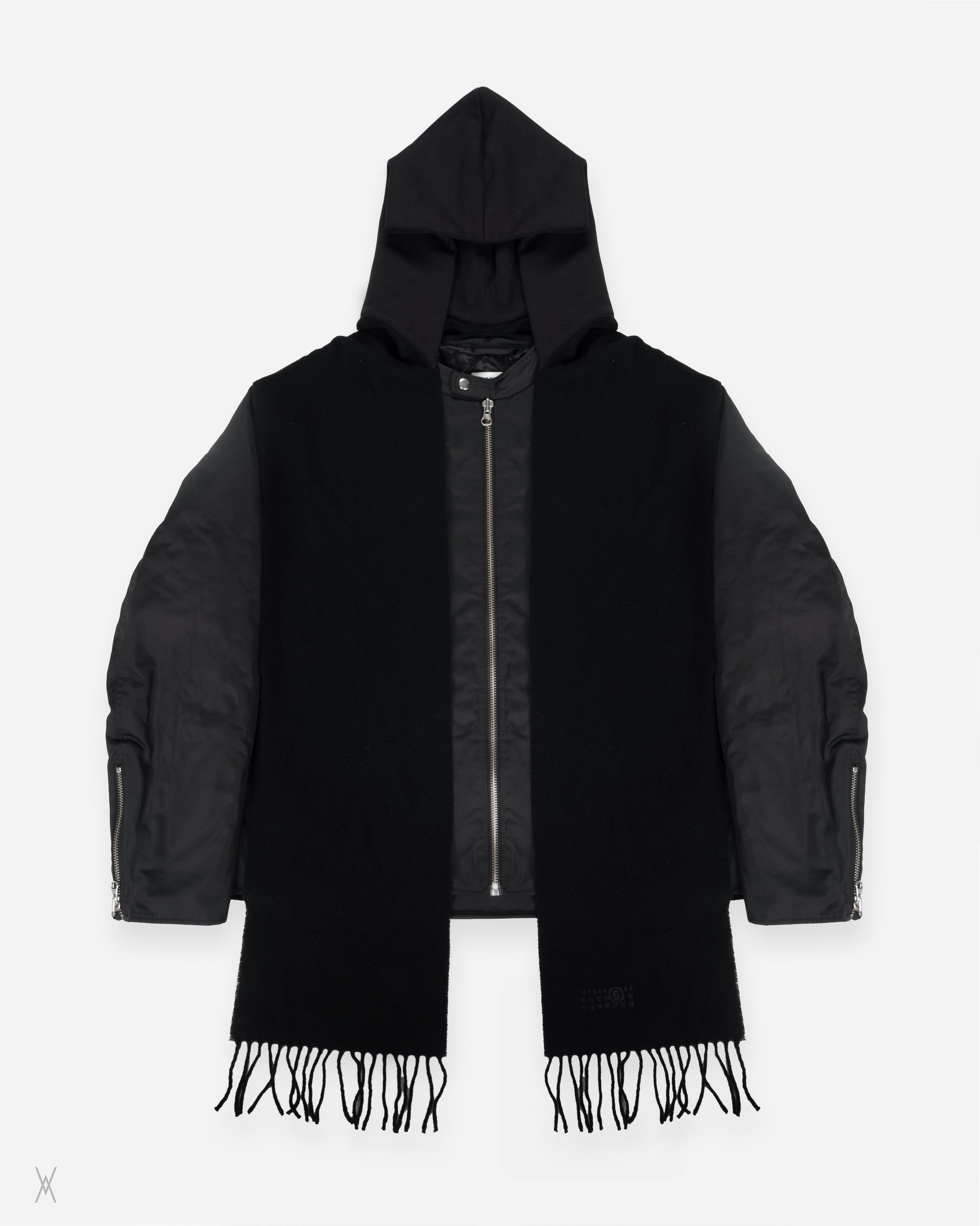 Hybrid outerwear from MM6 Maison Margiela, merging utility with subtle eccentricity.