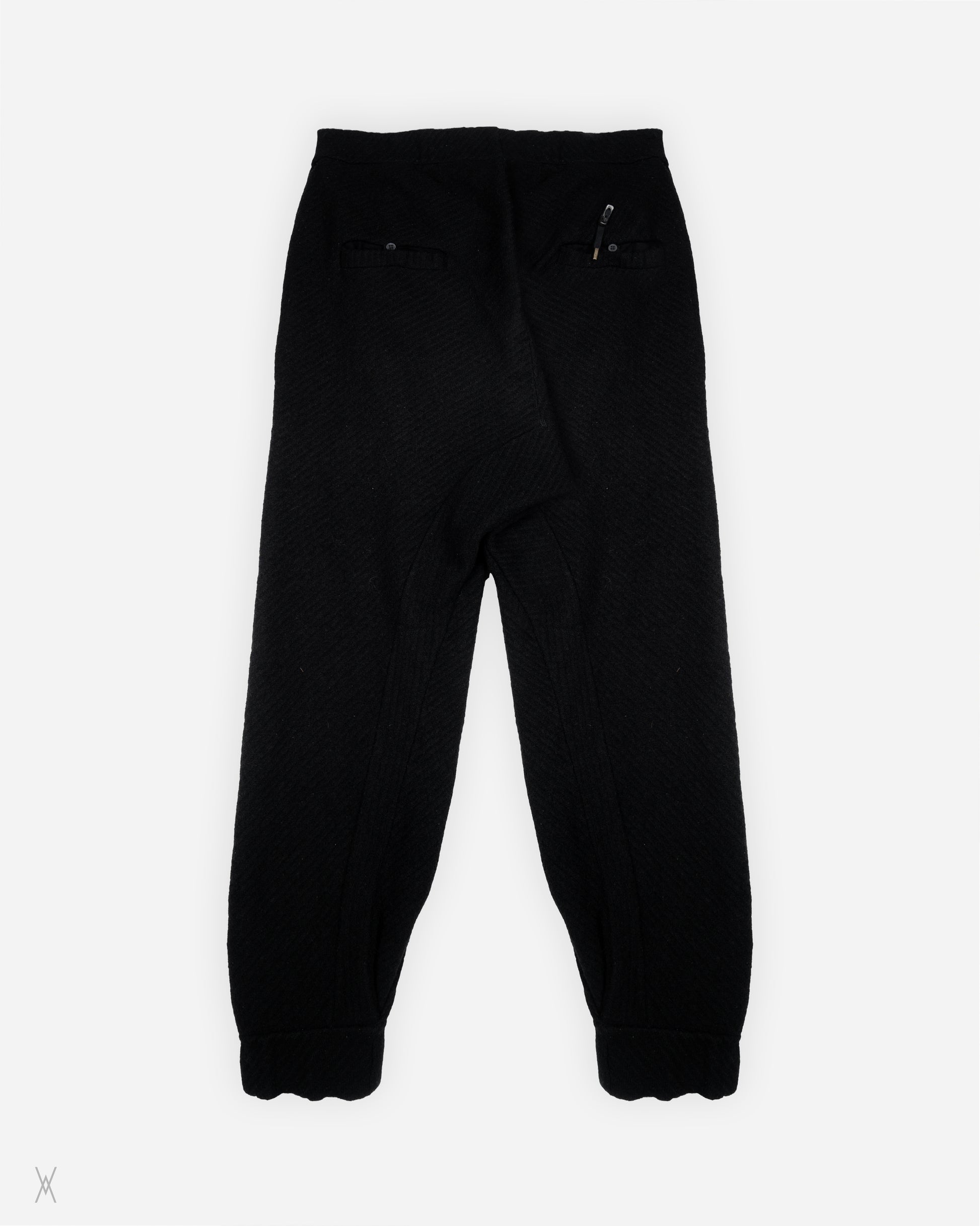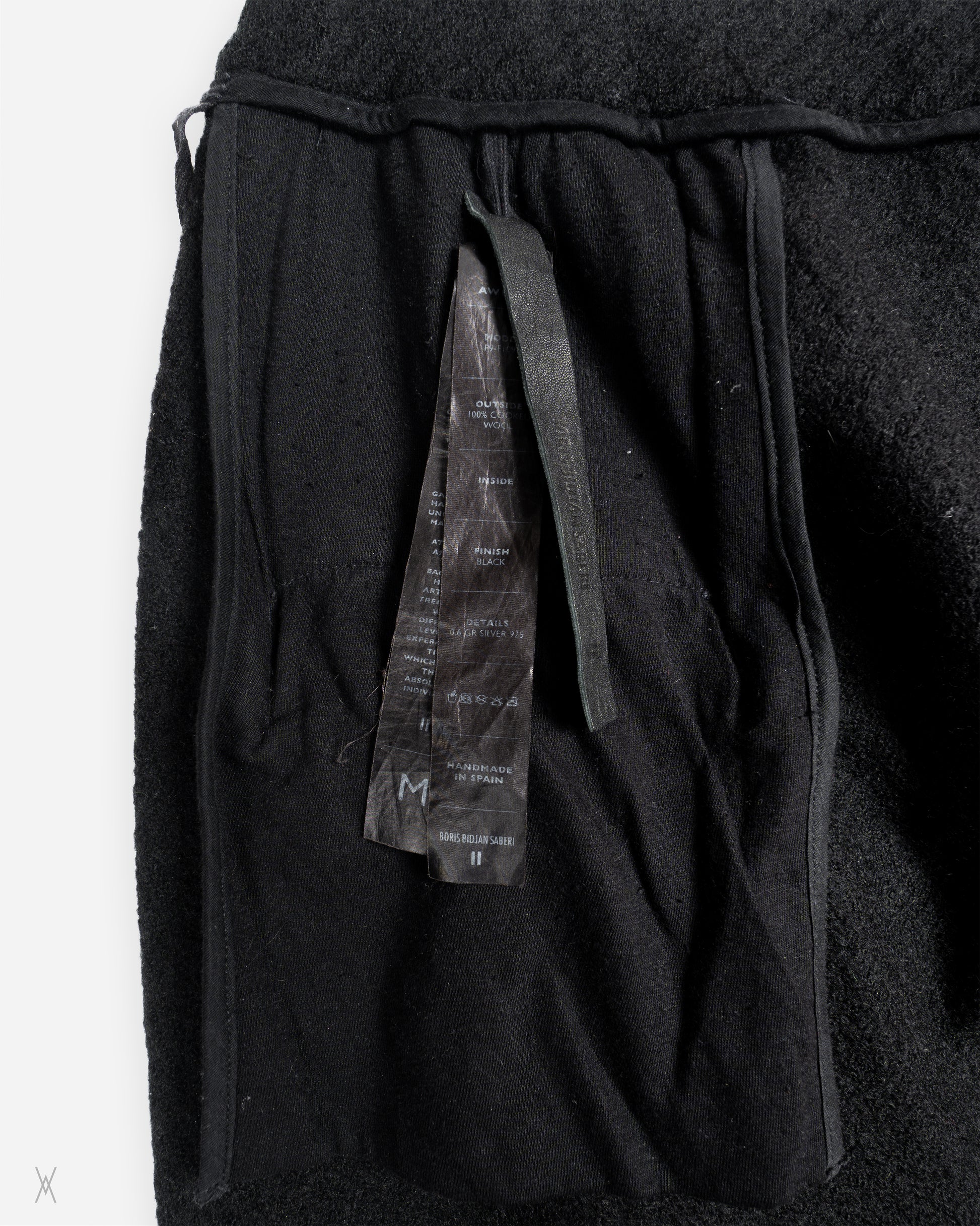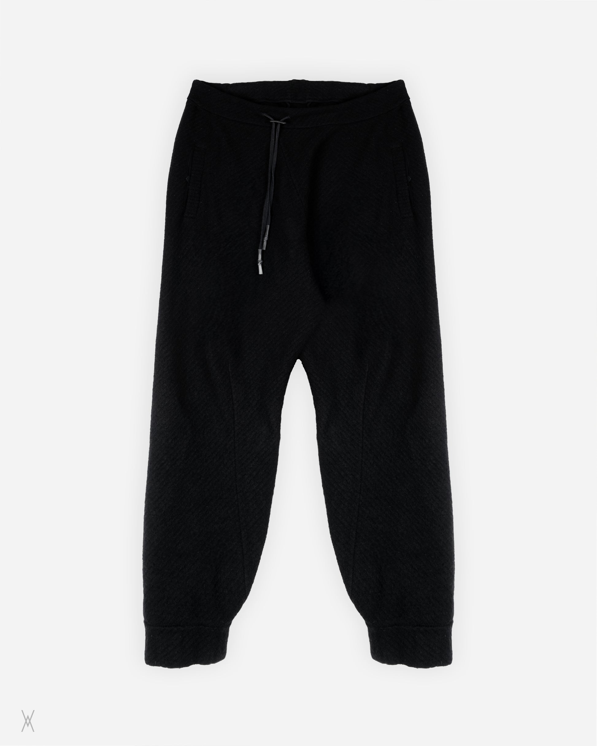 Boris Bidjan Saberi wool trousers, crafted with the brand’s signature focus on texture, construction, and understated functionality. Made from a dense wool fabric with a soft, slightly felted surface, the piece offers warmth and structure while maintaining a relaxed, ergonomic silhouette. Designed with an elasticated waistband and adjustable drawstring, the trousers balance comfort with a refined, utilitarian aesthetic.