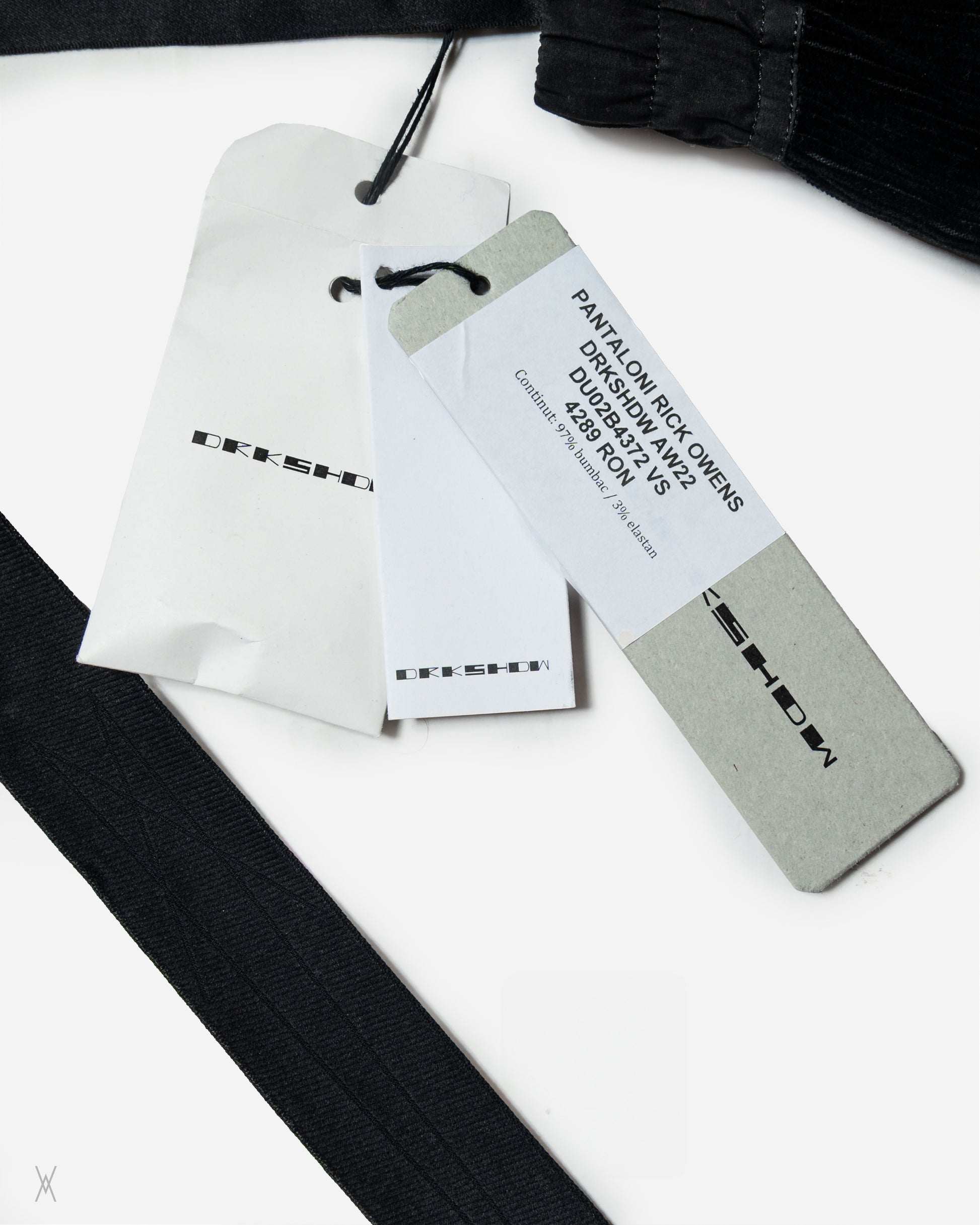 Finished with internal DRKSHDW branding and the season’s label. Part of the FW22 collection, these pants encapsulate the brutal grace at the heart of Owens’ design ethos.