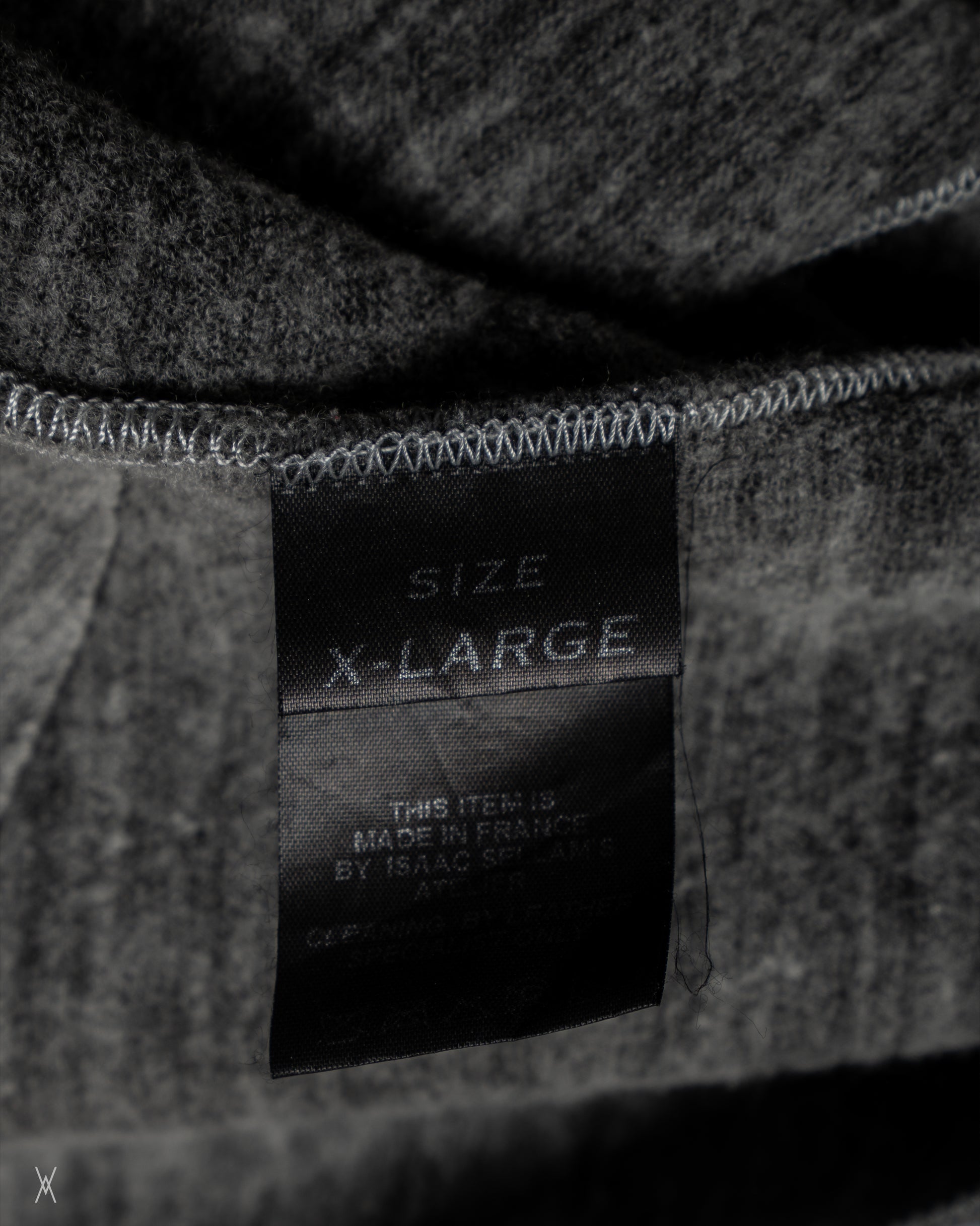 The leather displays an intentionally distressed, washed appearance characteristic of Isaac Sellam’s material treatment. Interior is unlined, showing raw seam finishes and construction details. Made in France.